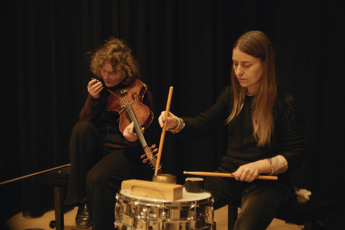 Irene and Aagot present a set where their instruments engage in a free and intimate dialogue. Already collaborators in larger ensembles within Copenhagen's vibrant music scene, the two musicians share a deep curiosity for exploring and manipulating the original sounds of their instruments.Using a mix of acoustic instruments, objects, microphones, and electronics, they create a shifty, dynamic and imaginative sound world.